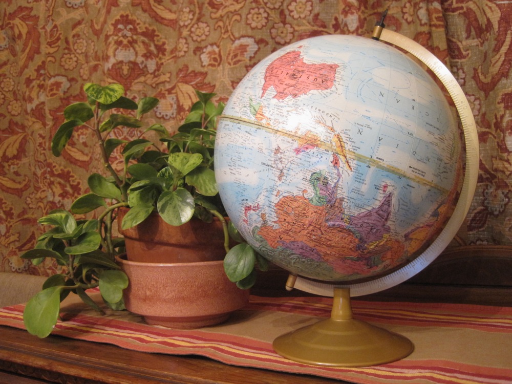 Because our son lives ‘down under’ I’m thinking a lot more about maps, globes and the size of everything. That’s why I turned my globe over, in order to reorientate by brain.