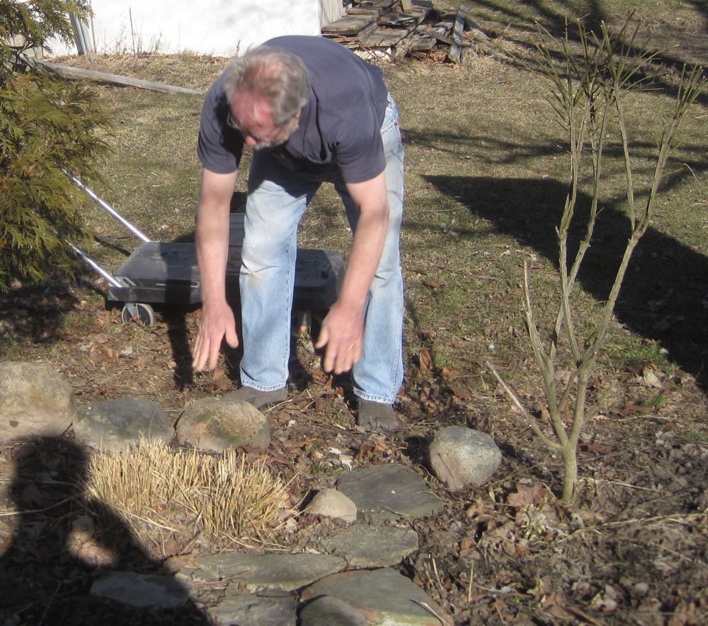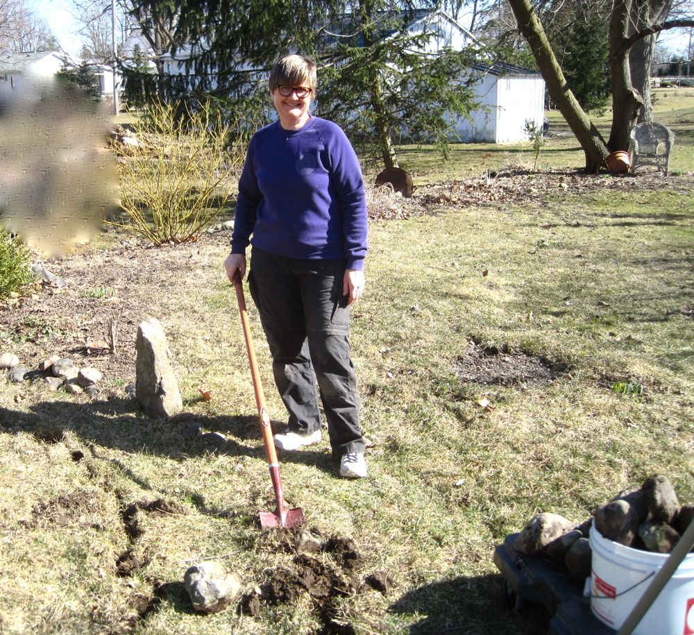I didn’t wake up this morning knowing that I was going to deconstruct my little backyard labyrinth on this sunny day. It came about during a leisurely conversation with my husband after attending the morning Good Friday service at our church and eatingΒ lunch on our back deckΒ on this first warm day of spring. We were getting ready to do some yard work and he nonchalantly said, “I have a suggestion for you, take it for what it’s worth. I think it’s time to decommission the labyrinth.” Sitting there looking at our forlorn little labyrinth in its sorry looking pre-daffodil state, my heart smiled and said “Yes”. There was no struggle.