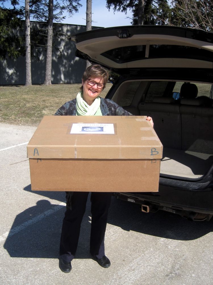 And then I had to construct the shipping box. This is another story completely! If it got accepted into the show it also had the possibility of being chosen for the 3 year travelling exhibit. There were strict guidelines to follow in the Call For Entry. ย In order to protect the vessel I had to build a large shell of styrofoam (so totally un-environmentally sound that this incongruity did not get lost on me)ย surrounded by corrougated cardboard. Help came from my wanna-be engineer husband.