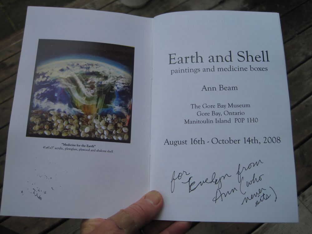 Days later I got around to reading the little book I purchased from her, the catalog of her 2008 Earth and Shell exhibit. As I read it I thought, “what can I find online about her?” Turns out she and her husband, Carl Beam, were an incredibly influential couple in the Canadian art scene. As I read their CVs I was humbled to think that I had ‘accidentally’ run across such artistic wisdom. That I had briefly wet my feet in the brook of the ancients. Turns out we actually did that, because it was because of Ann we found our way to Bridal Veil Falls and hiked for the afternoon.