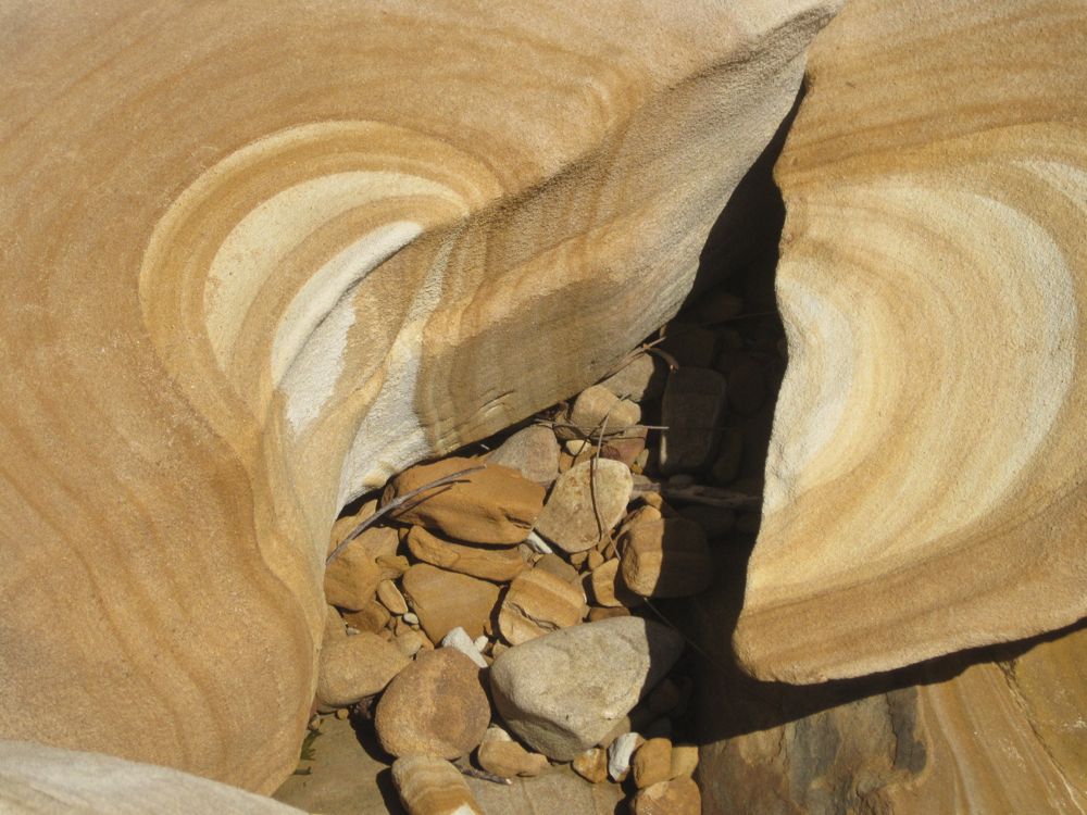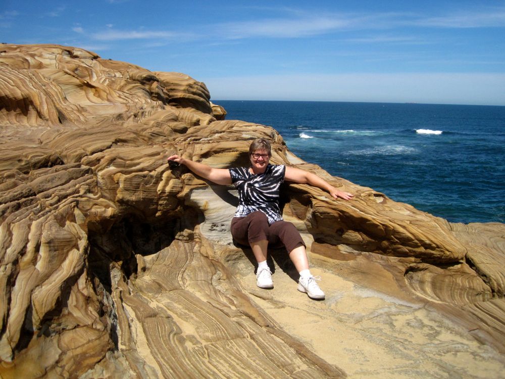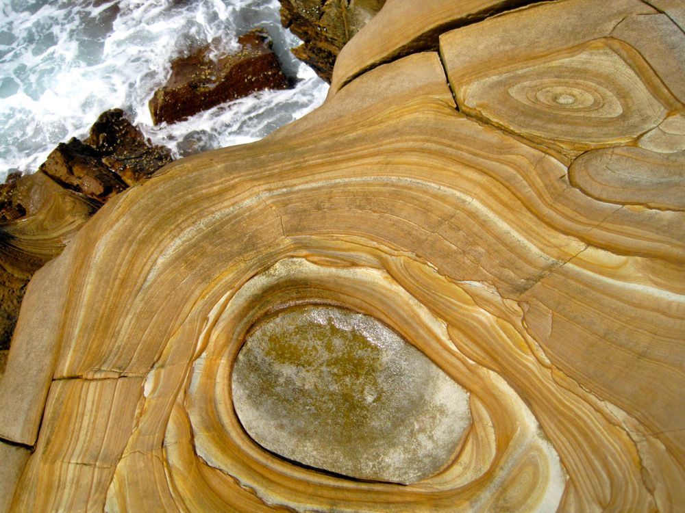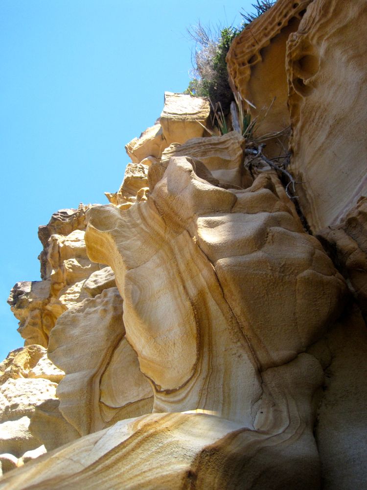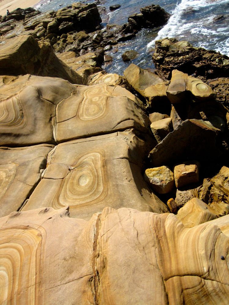 A lovely deserted sandstone-coloured beach awaited us. A gentle breeze off the ocean helped me to cool off. Tessalations and sandstone formations abound. I could have spent hours photographing. Thanks to our Canadian-born guide, Rossanne Hyde, who pulled out morning tea on cue, just at the right spot!