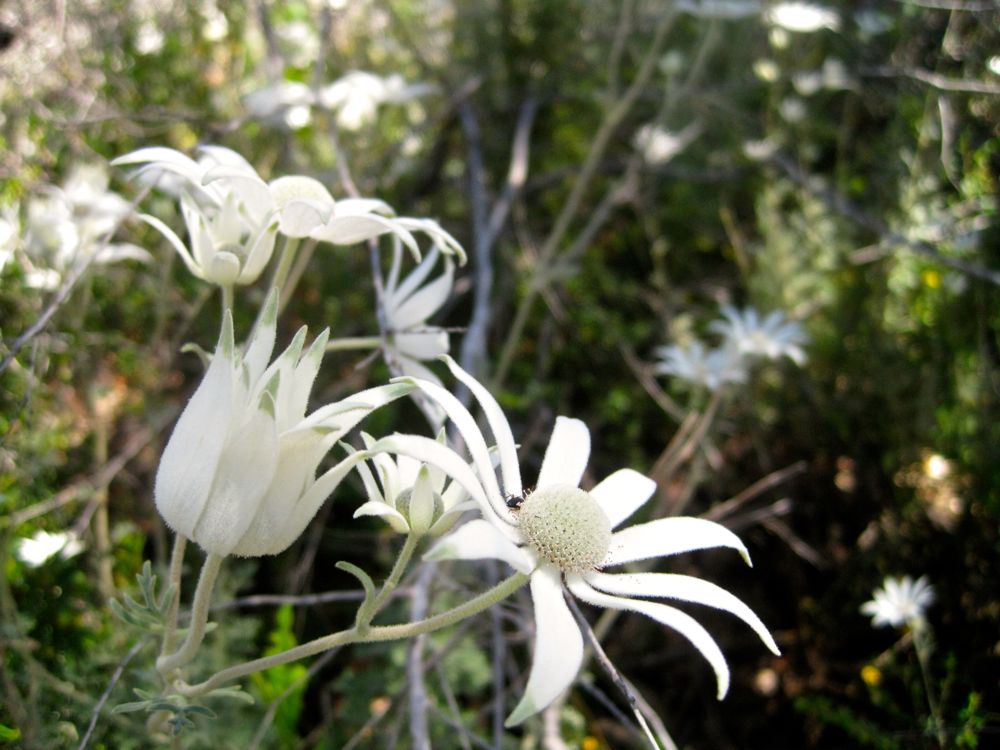 We passed beautiful flannel flowers, Actinotus helianthi. Soft furry-down daisy-like flowers, exactly the texture of flannelette.