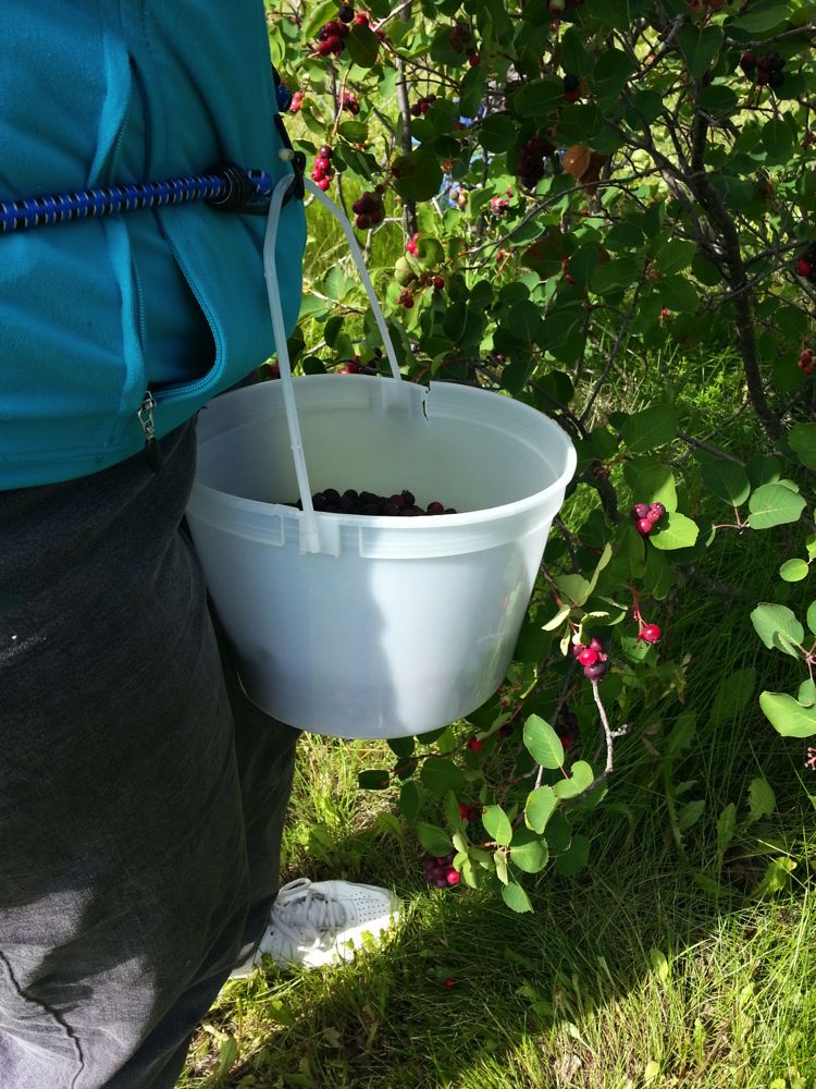 Saskatoon berries are sort of like blueberries, but a whole lot easier to pick, I think. They are a prairie delicacy and loaded with antioxidants (things that are good for you).