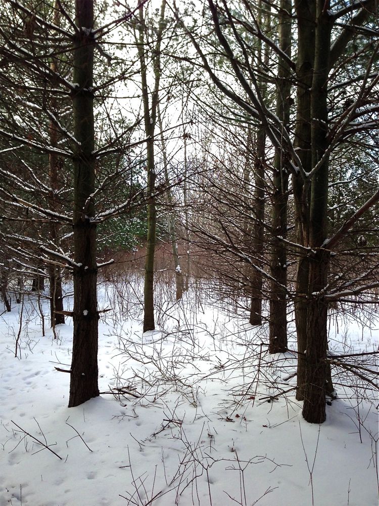 I pulled into the parking lot at Lorne Henderson Conservation Area (#SCRCA) at the same time the park ranger was finishing her rounds. I started out on my normal walking route and then noticed fresh footsteps in the snow so I thought I’d follow those instead. I must have followed her footsteps.
