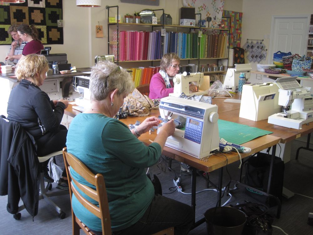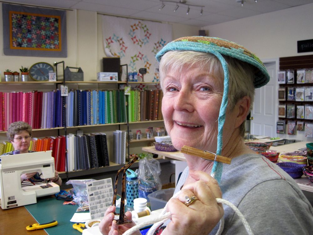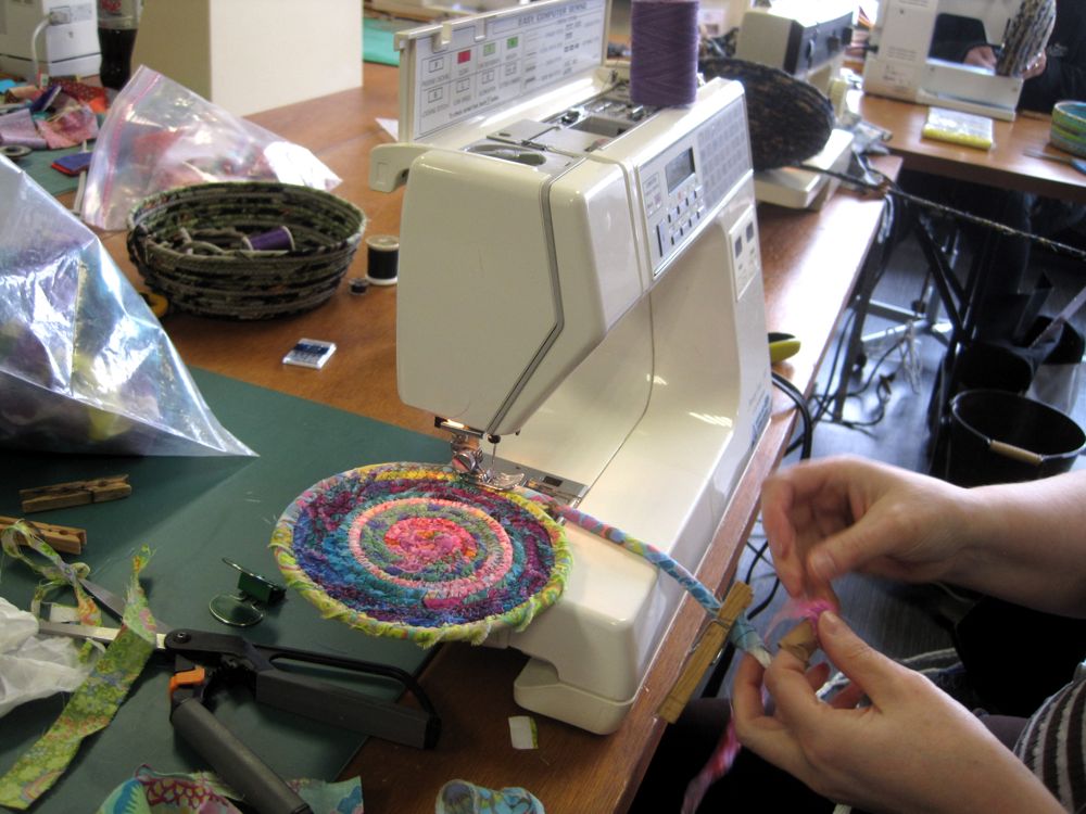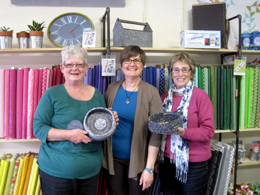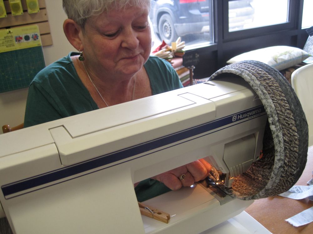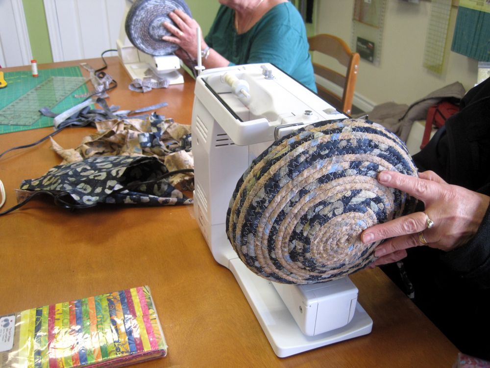 What fun today teaching machine-stitched rag basketry. Held at the new quilt shop in Wyoming, ON, Stitchaire.