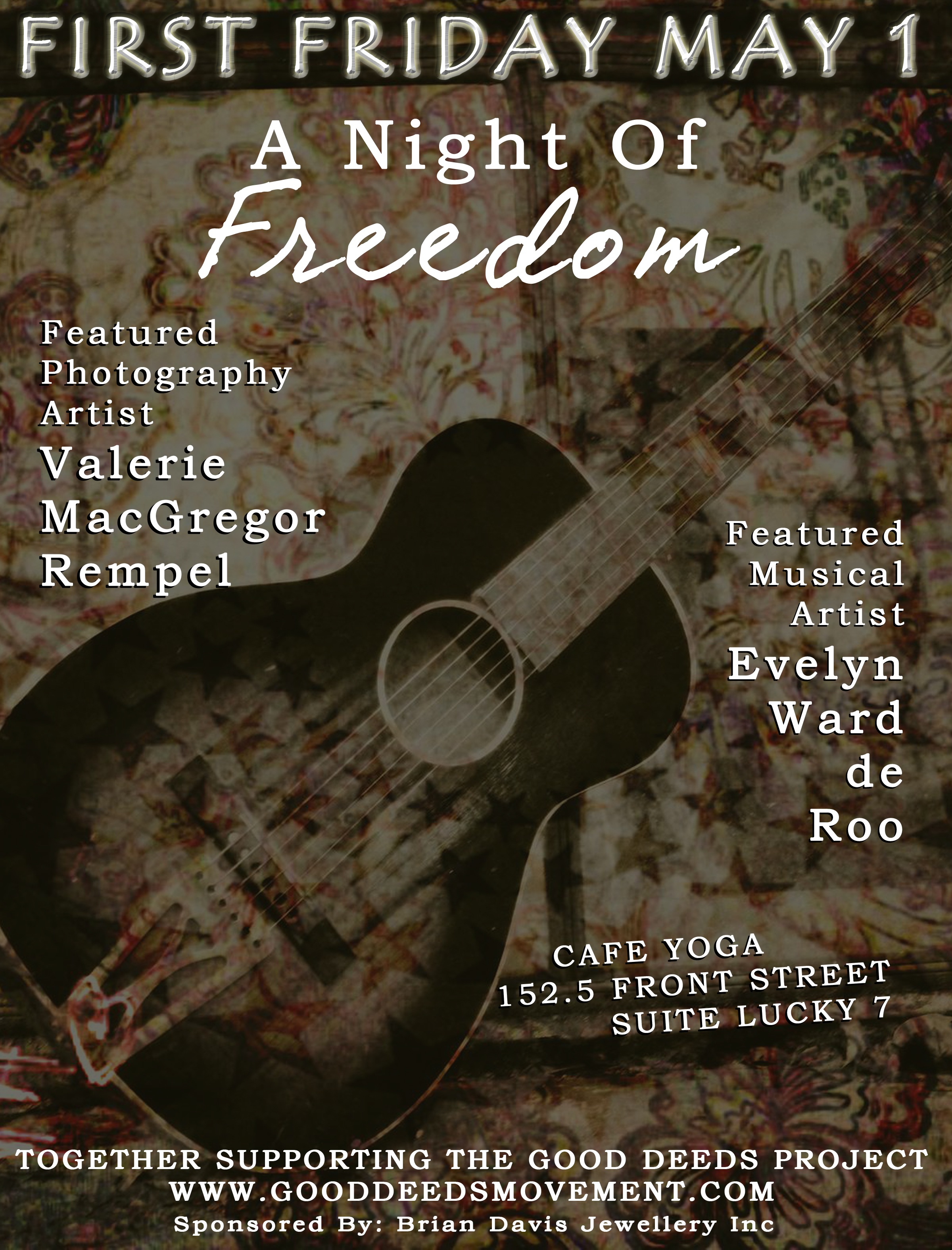 First Friday, May 1, Sarnia Cultural walkabout. Dip in for some healing sounds. Let you friends know: Email a link to a friend (Opens in new window) Email Print (Opens in new window) Print MoreShare on Tumblr Share on Reddit (Opens in new window) Reddit Like Loading... Related What did this post stir up in you? Cancel reply Δ