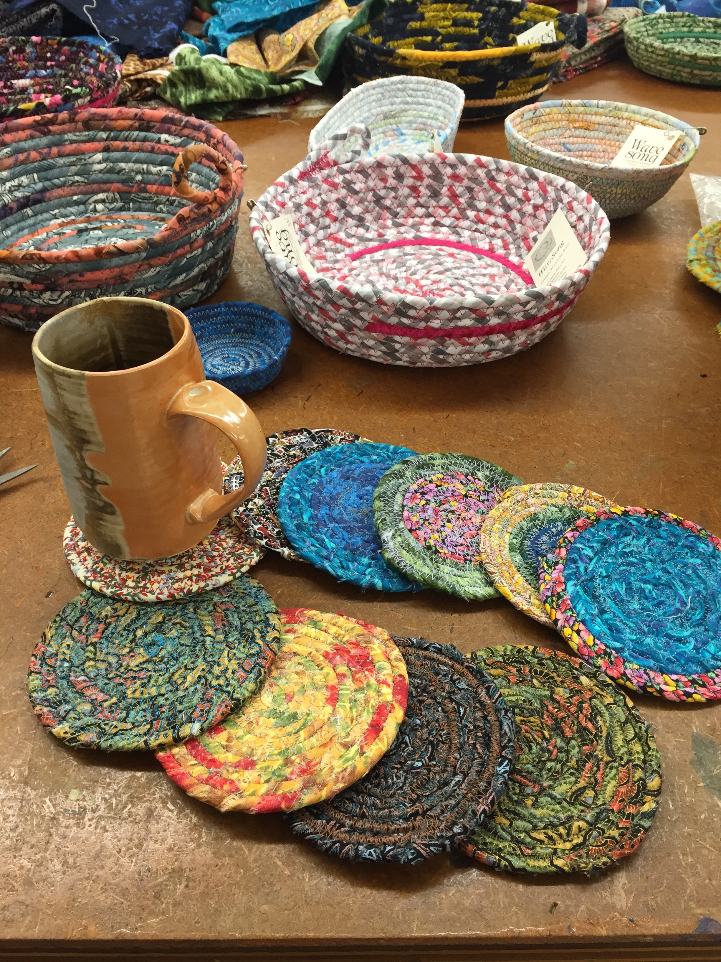 A very enthusiastic group gathered on August 29th at Runs With Scissors Studio in Winnipeg Beach to learn how to make rag rope baskets.
