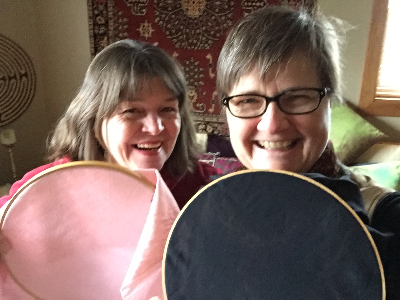 5. I will exchange my hoop with my friend on a regular basis and stitch on her hoop, and she on mine, for a time period.