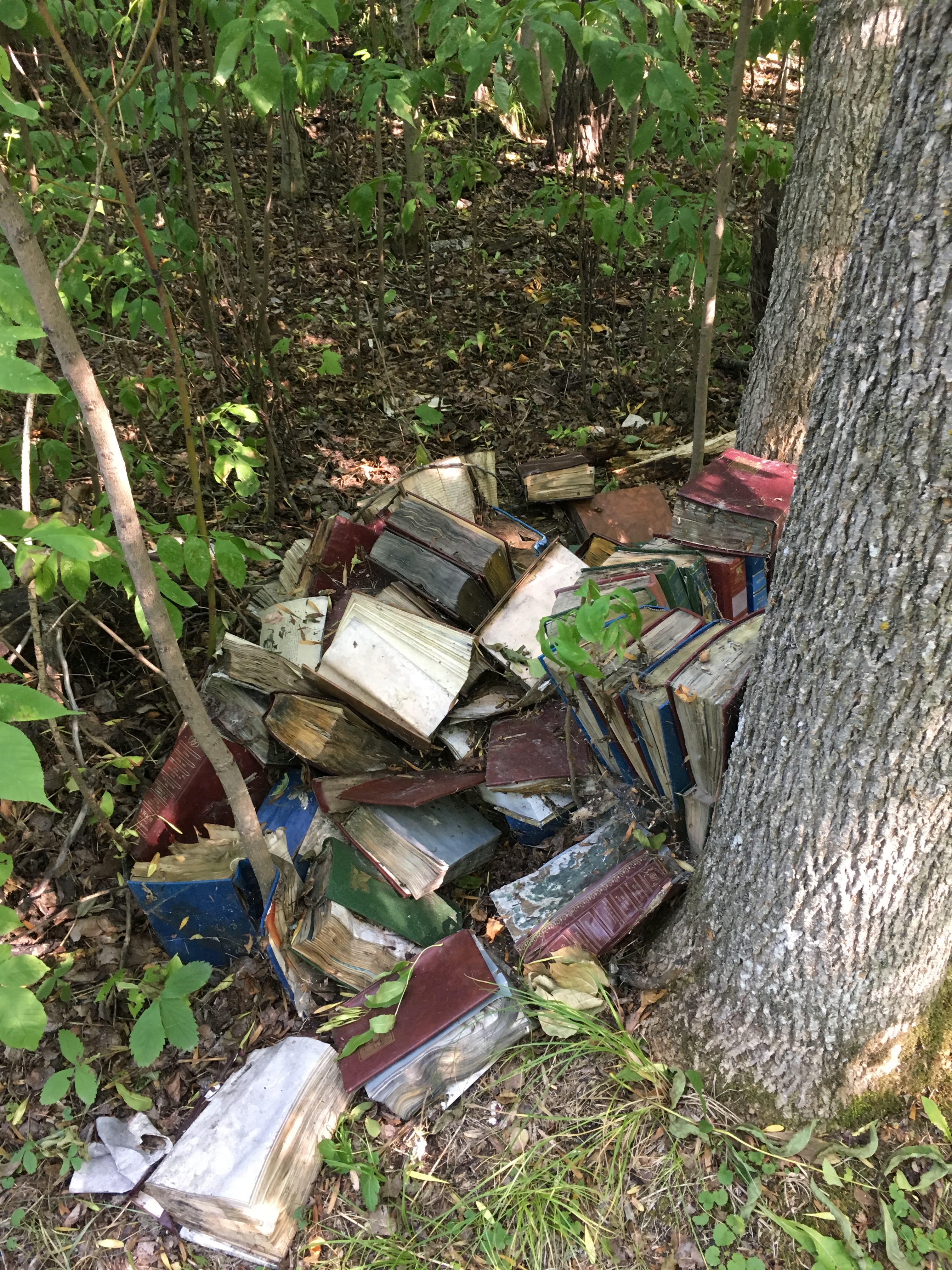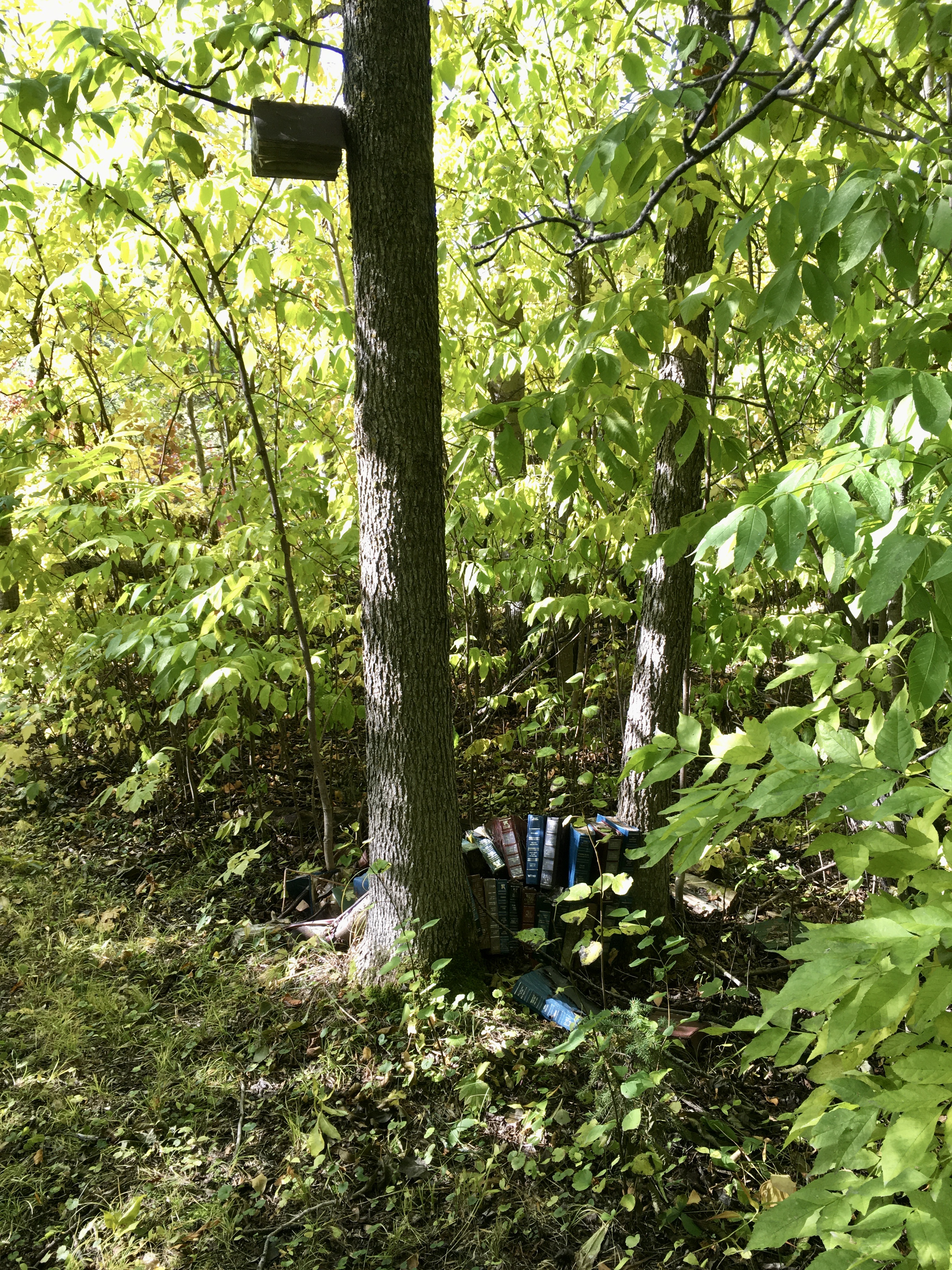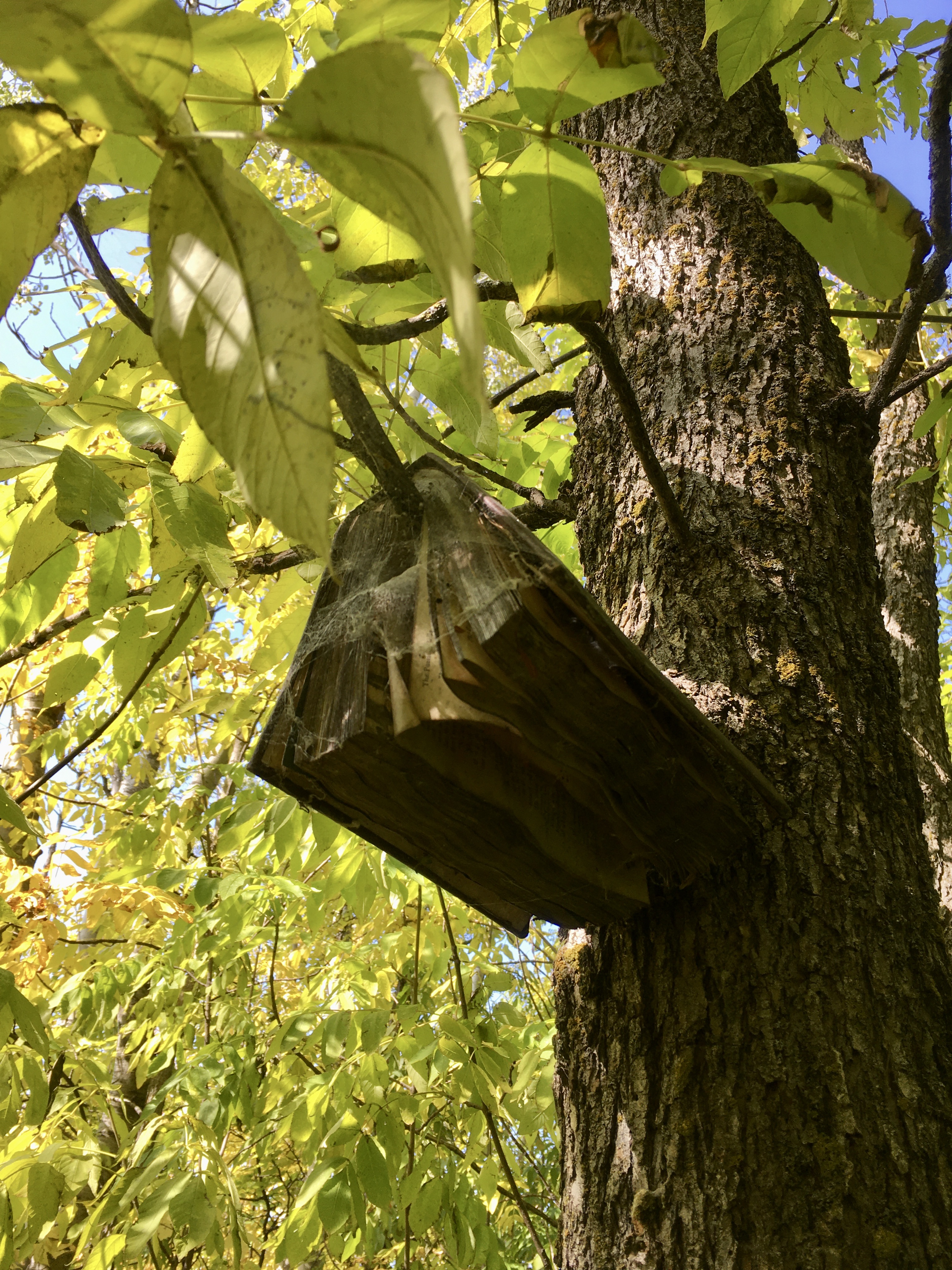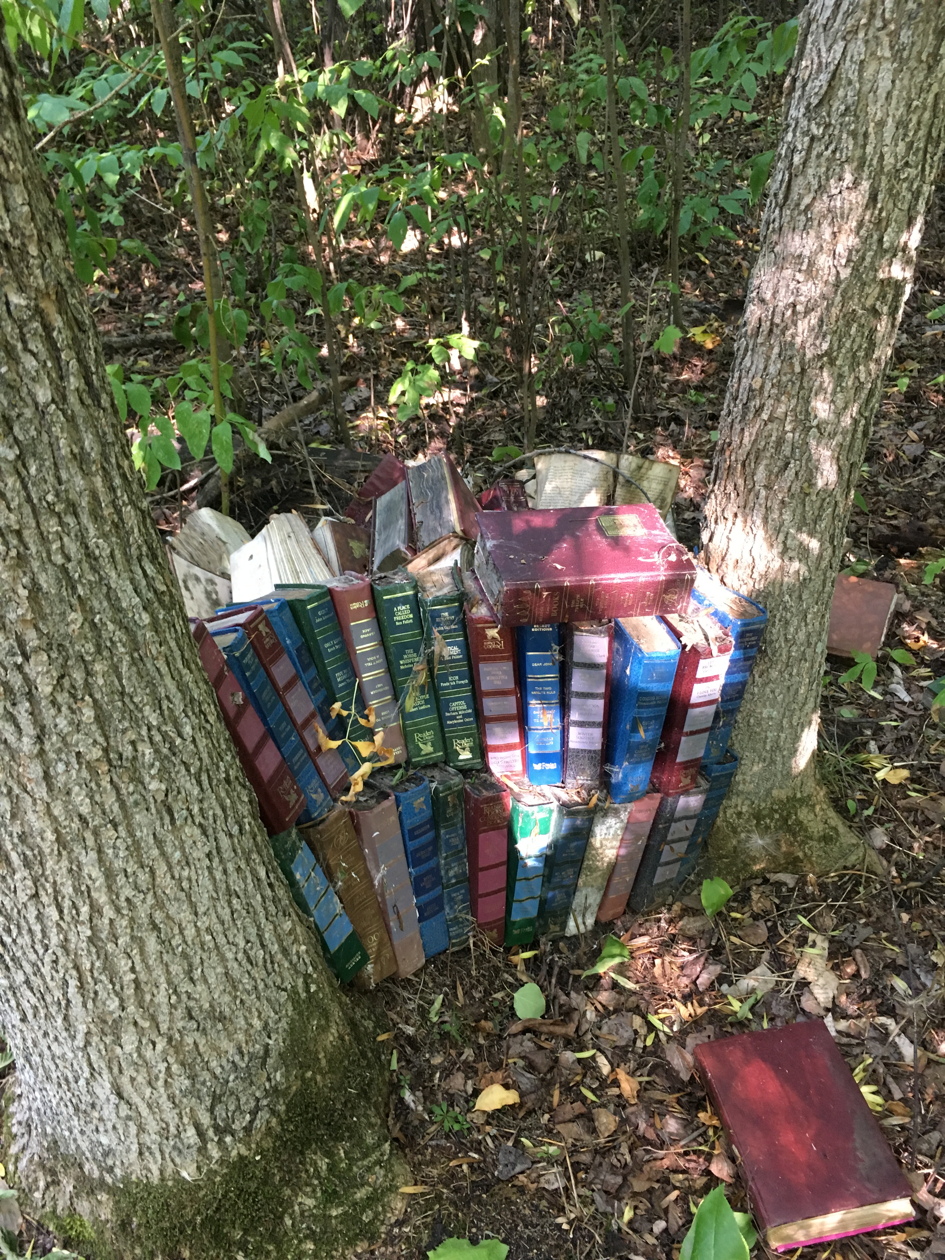 I have been inspired to do odd stuff with old books by @book_ronnie on Instagram. She leaves books in piles or assemblages in the woods and waits to see what will happen to them.