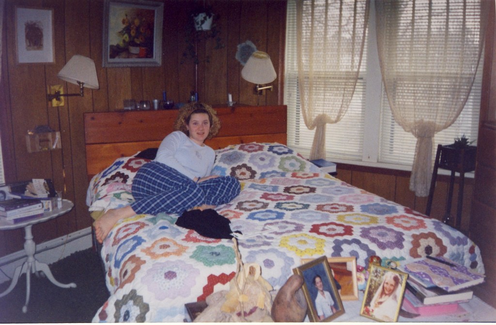 I knew there was a woman in our small town who was glad to teach me how to make an actual quilt. So with the help of Willie Salts, and salty she was, I got the whole thing onto a quilting frame and again, quilted the whole thing by hand.