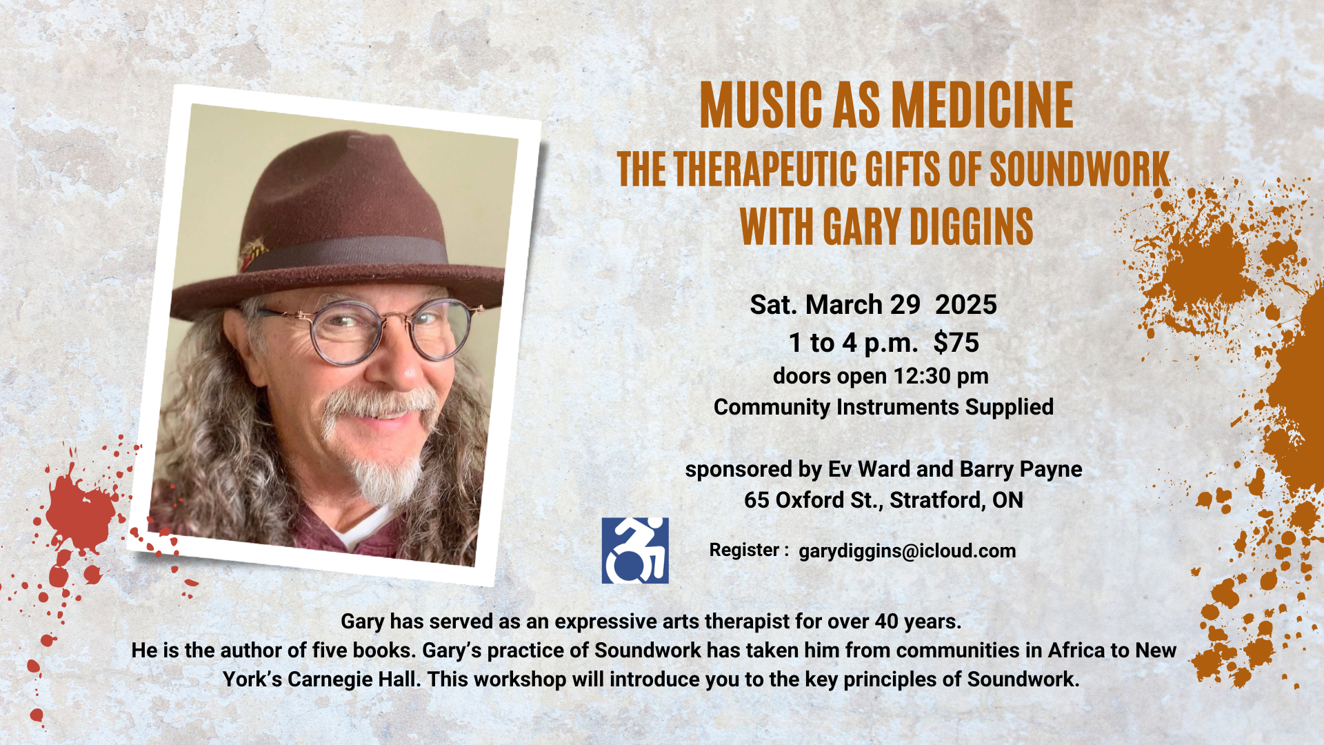 Don’t miss this in-person opportunity to immerse yourself in Music as Medicine with GARY DIGGINS. This is an afternoon workshop introduction to Soundwork as Soulwork. Experience creating intentional sound for healing. No musical experience is necessary. Come with an open heart to listen deeply and be in community.