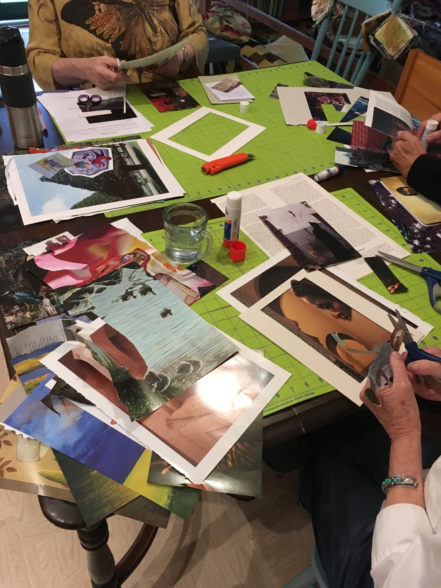 Cut and paste during a day of soul inquiry. You may or may not already know about using collage in personal growth work. Using the SoulCollage method we will explore archetypes and symbols which support and inform our individual and collective lives and call us to transformation. It is a process which begins as simple creative fun, but which suddenly may surprise and awaken you! Learn how to access your intuition and create incredible cards with deep personal meaning that will help you with life’s questions and develop a practice which will serve you for a lifetime.